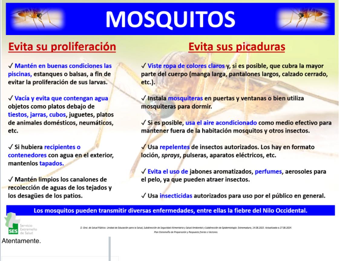 Se aconseja a la población seguir las indicaciones recomendadas por el Servicio Extremeño de Salud. 20 octubre 2025 Se aconseja a la población seguir las indicaciones recomendadas por el Servicio Extremeño de Salud.
